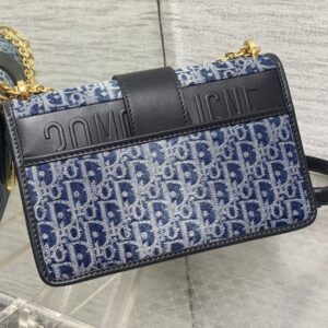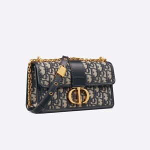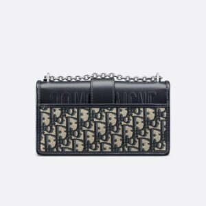Dior 30 Montaigne East-West Bag With Chain In Oblique Motif Canvas and Smooth Calfskin Blue