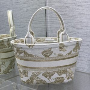 Christian Dior Hat Basket Bag In Butterfly Zodiac Motif Canvas White/Gold