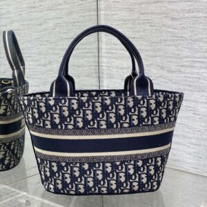 Christian Dior Hat Basket Bag In Oblique Motif Canvas Blue