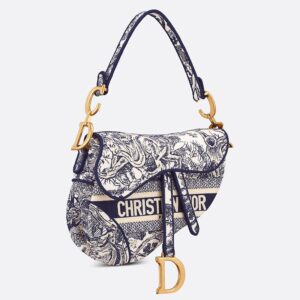 Christian Dior Saddle Bag In Toile de Jouy Motif Denim Navy Blue