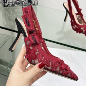 J’Adior Slingback Pumps Women 3D D-lace Motif Transparent Mesh Red