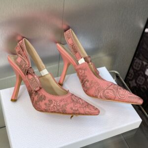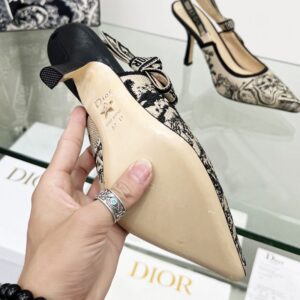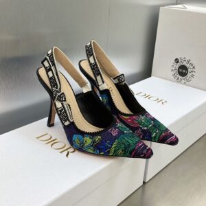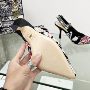 J’Adior Slingback Pumps Women Toile de Jouy Pop Motif Canvas with Beads and Strass Black