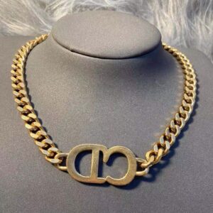 Dior Clair D Lune Choker Antique Metal with CD Signature Embellished Crystals Gold