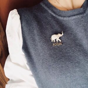Dior Elephant Brooch Antique Metal with Elephant Signature Embellished Crystals and J’Adior Signature Gold