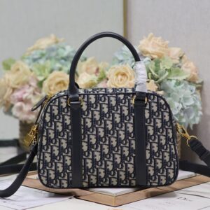 Large Dior D-Vibe Bowling Bag In Oblique Motif Canvas Blue