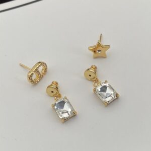 Dior Petit CD Asymmetric Earrings Metal with Star Charm, CD Signature Embellished Crystals and Faceted Crystals Gold