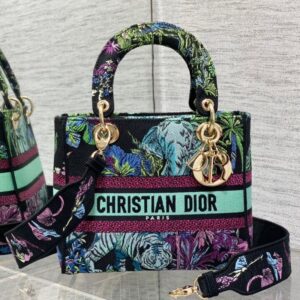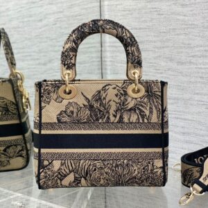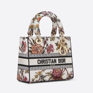 Medium Lady D-lite Bag Jardin Botanique Motif Canvass White