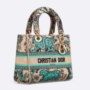 Medium Lady D-lite Bag In Toile de Jouy Sauvage Motif Raffia Beige/Blue