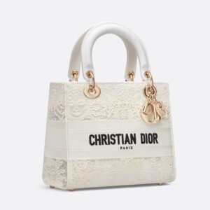 Medium Lady D-lite Bag In Toile de Jouy Soleil Motif Macrame White