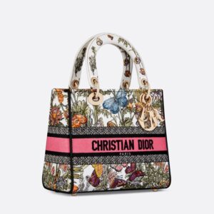 Medium Lady D-lite Bag Mexico Millefiori Motif Canvas White/Pink