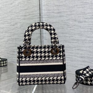 Mini Lady D-lite Bag In Macro Houndstooth Motif Canvas Black