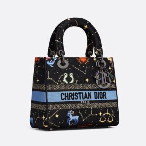 Medium Lady D-lite Bag Pixel Zodiac Motif Canvas Black