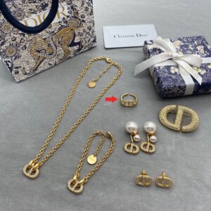 Dior 30 Montaigne Necklace Metal with CD Circle Signature Embellished Crystals Gold
