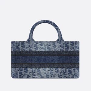 Mini Dior Book Tote with Strap In Oblique Motif Denim Blue