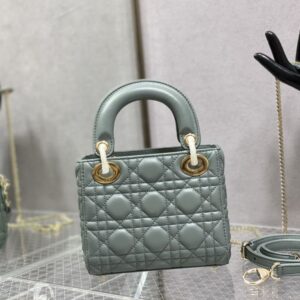 Mini Lady Dior Bag In Enamel Cannage Lambskin Rock Ash