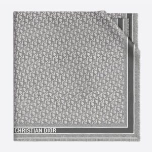 Dior Shawl D-Oblique Motif Wool, Silk and Cashmere Grey