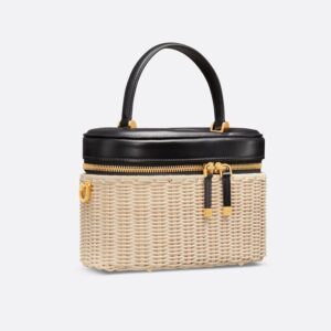 Medium Dior CD Signature Vanity Case Wicker and Calfskin Black