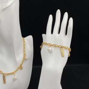 J’Adior Bracelet Metal with Resin Pearls, Star and Bee Charms Gold