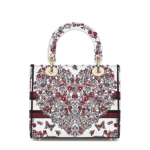 Medium Lady D-lite Bag In Le Coeur des Papillons Motif Canvas White/Red
