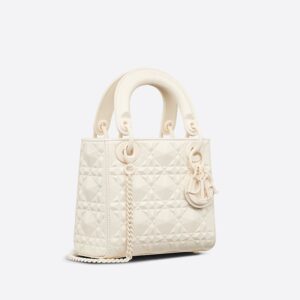 Mini Lady Dior Bag Ultramatte Cannage Calfskin with Diamond Motif White