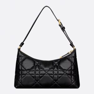 Mini Dior Miss Caro Cigale Bag In Macrocannage Lambskin Black