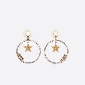 Dior Tribales Earrings Antique Metal with Resin Pearls and J’Adior Star Round Drop Signatures Embellished Crystals Gold