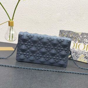 Lady Dior Pouch Ultramatte Cannage Lambskin with Diamond Motif Blue