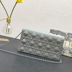 Lady Dior Pouch Ultramatte Cannage Lambskin with Diamond Motif Grey
