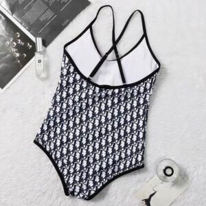 Dior Crisscross Swimsuit Women Oblique with Bee CD Motif Lycra Black