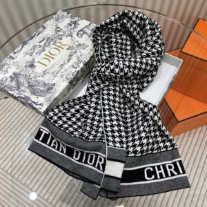 Dior Scarf Micro Houndstooth Motif Cashmere Black