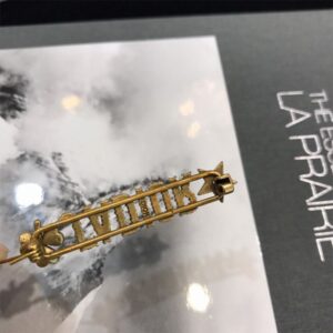 J’Adior Brooch Antique Metal with J’Adior Signature Embellished Crystals, Star and Clover Signatures Gold