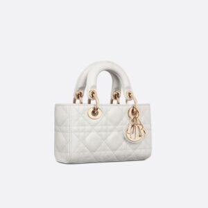 Micro Lady D-Joy Bag In Cannage Lambskin White