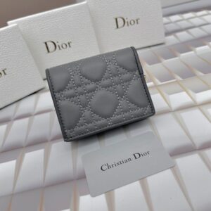 Mini Lady Dior Flap Card Holder Cannage Lambskin Grey