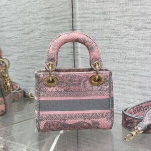 Mini Lady D-lite Bag In Toile de Jouy Motif Canvas Pink