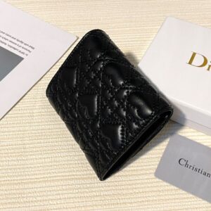 Dior Flap Card Holder Cannage Lambskin Black