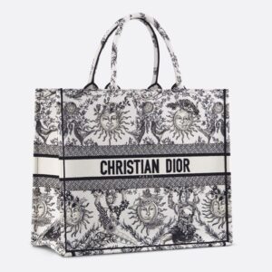 Dior Book Tote In Toile de Jouy Zodiac Motif Canvas Black