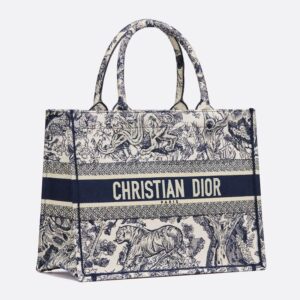 Dior Book Tote In Toile De Jouy Motif Denim Navy Blue