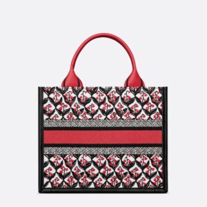 Dior Book Tote with Strap In Dioramour Lily Of The Valley Motif Canvas and Calfskin Red