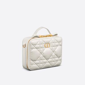 Dior Caro Box Bag with Chain Cannage Calfskin White