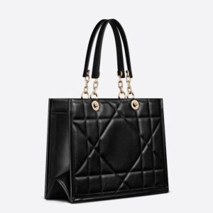 Dior Book Tote In Toile de Jouy Soleil Motif Macrame Black