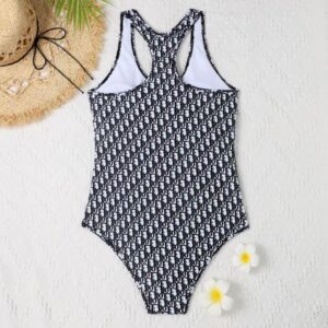 Christian Dior Racerback Swimsuit Women Oblique Motif Lycra Black