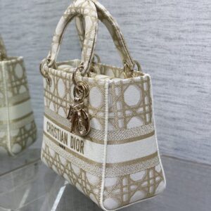 Medium Lady D-lite Bag In Macrocannage Motif Canvas Gold