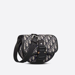 Small Dior Rider 2.0 Zipped Messenger Bag In Grained Calfskin and Oblique Motif Canvas Black