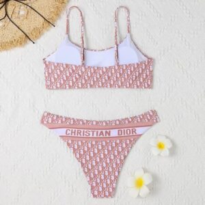 Christian Dior Spaghetti Bikini Women Oblique Motif Lycra Pink
