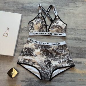Christian Dior J’Adior High Waisted Crisscross Bikini Women Toile De Jouy Motif Lycra Black