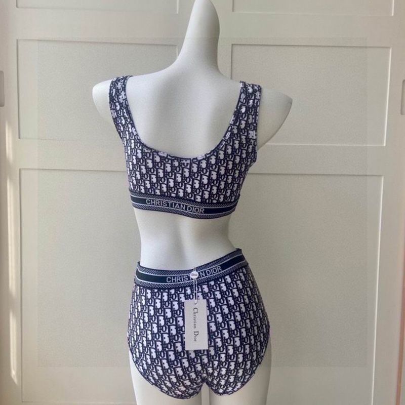 Crafted from high-quality Lycra, the bikini not only offers exceptional comfort but also highlights your figure with its flattering design. The signature Christian Dior accents and contrasting band add a touch of luxury, making this piece perfect for both beach days and poolside lounging.