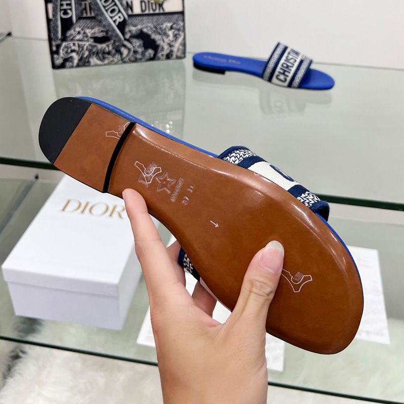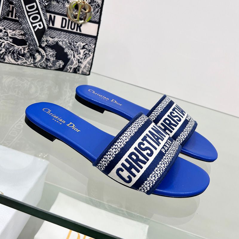 Christian Dior Dway Slides Women Canvas Bright Blue