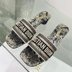 Dreams of elegance and sophistication become a reality with the exclusive Christian Dior Dway Slides. These stunning black slides are crafted from high-quality canvas, featuring the exquisite Toile de Jouy Mexico motif, a hallmark of Dior’s artistry. When you wear these slides, you don’t just step out; you make a statement.