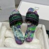 Embrace elegance with the Christian Dior Dway Slides, featuring a captivating Toile de Jouy Mexico motif in stunning white and green. These chic slides are designed for the modern woman, combining comfort and style seamlessly.