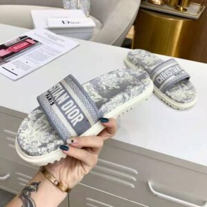 Empowerment comes from choices that reflect individuality, and the Christian Dior Dway Slides exemplify this perfectly. Elevate your footwear collection with these stunning slides featuring a unique Toile de Jouy motif, a hallmark of classic elegance. Crafted from premium cotton, the slides are not just a fashion statement but a testament to refined artistry.